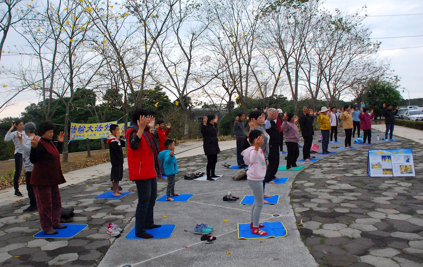 ![]() 图1:法轮功学员在台湾嘉义香湖公园集体炼功 |