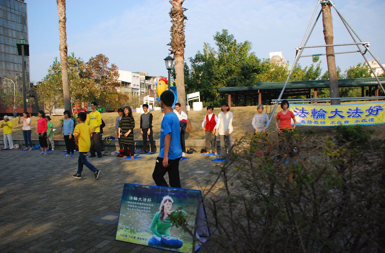 ![]() 图3:法轮功学员在台湾嘉义运动公园集体炼功 |
