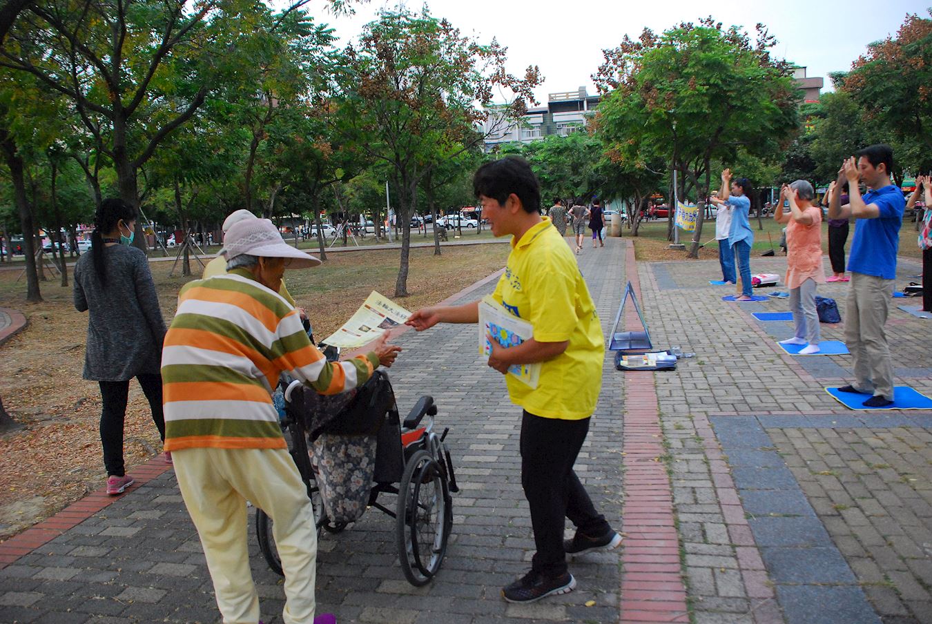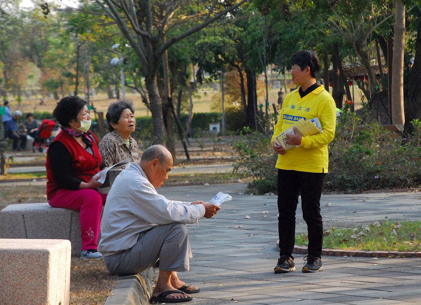 遍布台湾各地的法轮功学员,每天就这样向世人传播真相与福音,他们不求回报,只盼望善良的人了解法轮功,拥有美好的未来。