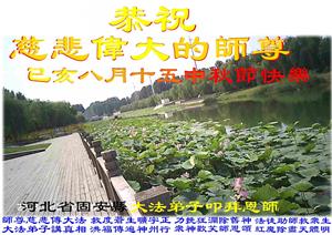 河北廊坊市文安一学法小组大法弟子恭祝师父中秋快乐!河北省廊坊市固安县大法弟子恭祝慈悲伟大的师尊中秋节快乐!