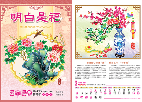 2020年明慧剪纸艺术年历:明白真相是福(挂历、台历)