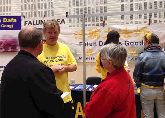 丹麦民众健康博览会上踊跃学炼法轮功(图)