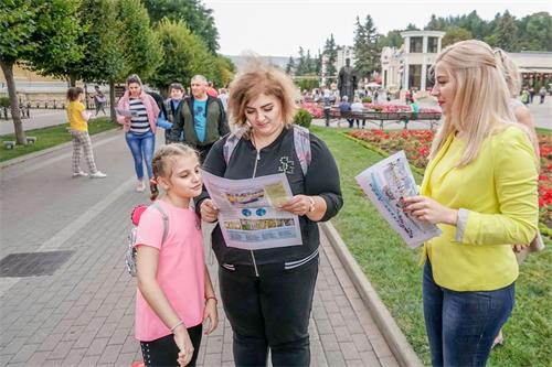 【明慧网二零一九年九月十八日】二零一九年九月十五日,在庆祝城市日当天,沿着俄罗斯度假小城基斯洛沃茨克市(Kislovodsk)最美丽的街道之一度假村大道,人流川流不息,这条大道从中央公园一直延伸到市中心。