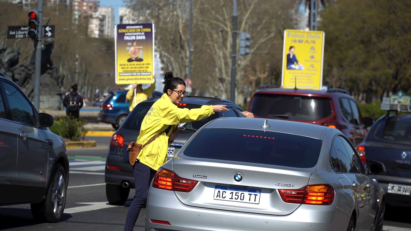 也有的华人不听真相的。其中一个还跟学员说:这些阿根廷人没事干嘛不去玩,去休息,跑到这来做这个干嘛,法轮功付多少钱啊。学员告诉他,大家周末不去玩,而来这里,就是为了你们来的,告诉你们华人真相,钱买不到这颗心的。这位华人听后,脸上露出歉疚的表情。