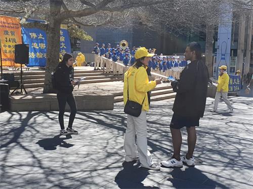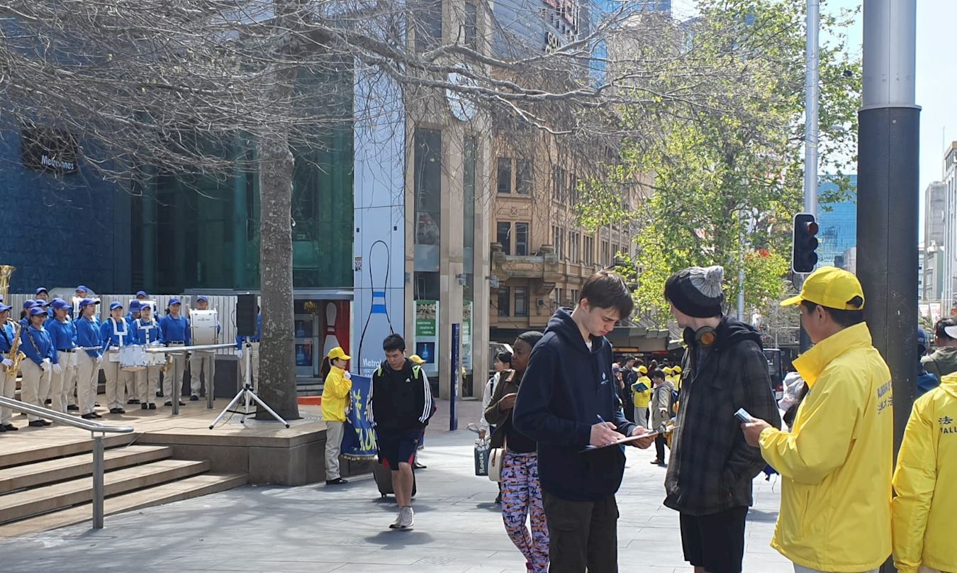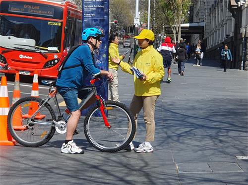 马克说,他们在听了法轮功学员告诉他的真相后得知,法轮功有益身心健康,但却遭受中共的迫害。他在征签表上签名是想表达自己对人权的支持,对受中共迫害的法轮功学员的支持。