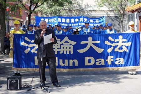 集会期间,法轮功学员分别用中、英文发言声援中国人三退的壮举,不少中西路人驻足聆听。法轮功学员杨女士在发言中表示,二零零四年十一月《大纪元时报》推出的系列社论《九评共产党》,以无可辩驳的事实,揭露了中共的杀人本质、邪教本质,并由此引发了浩大的中国人精神觉醒运动——退出中共党、团、队组织(即“三退”)。越来越多的人主动三退,解除被欺骗发下的誓言,摆脱中共邪灵的控制,回归人性的善良和理性。截止二零一九年九月,已有超过3.4亿中国人声明退出中共的组织。