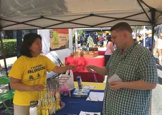 九月二十一日(周六),第38届云雀节在纽约州政府奥伯尼市云雀街举行。法轮功学员一如既往,清晨就设好展位,早早开始炼功。
