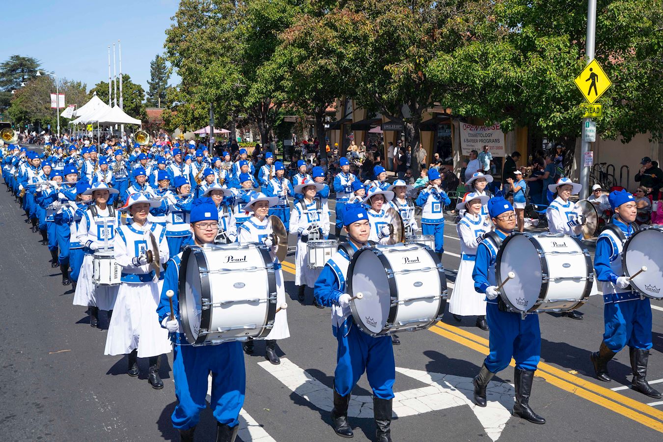 当天的游行于上午十一点开始。法轮功学员经过主席台时,主持人说:现在来的是天国乐团,演奏的是原创乐曲和美国古典乐曲,他们经常参加社区游行,在平时修炼法轮大法。法轮大法的原则是真善忍。