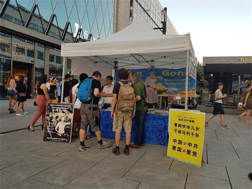 在“中国节”的第二天,法轮功学员除了在财尔商业大道举办信息日活动外,还有的法轮功学员到市中心著名的保罗广场给中国游客讲真相