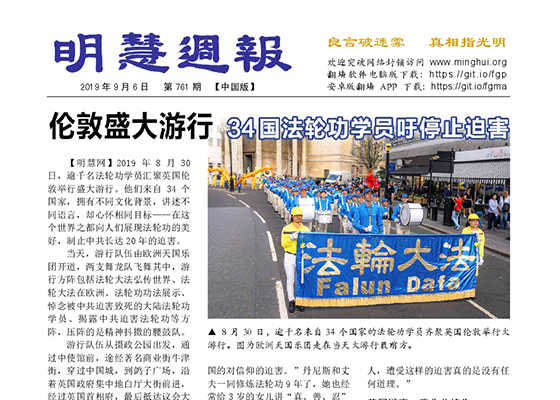 上千名来自欧洲及其它国家的法轮功学员于八月二十九、三十日和九月一日在伦敦多个著名景点和中共驻伦敦大使馆前举办了各种活动,传播法轮功真相。