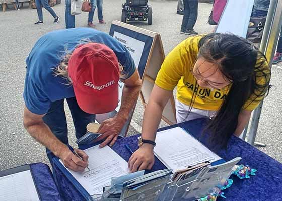 八月三十一日,法轮功学员参加在霍勒小镇著名的维克市场举办的集市活动,向当地民众传播法轮功真相,并把法轮大法的美好带到这个山清水秀的小镇。
