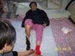 狱医张俭红第二天看了宋会兰的右腿后说:“这条腿废了。”当时宋会兰的右腿起了大紫泡。回家后,宋会兰身体僵直、眼神发呆、不会说话,手、腿直挺挺的,不能回弯,象木头人一样,没有任何反应和知觉,右腿以下,脚面、脚趾全部坏死,呈黑色,淌血水,摸上去硬邦邦,象铁板一样,一敲砰砰响。一天比一天恶化,越来越黑,越来越硬。一动弹,就顺着腿淌血水。