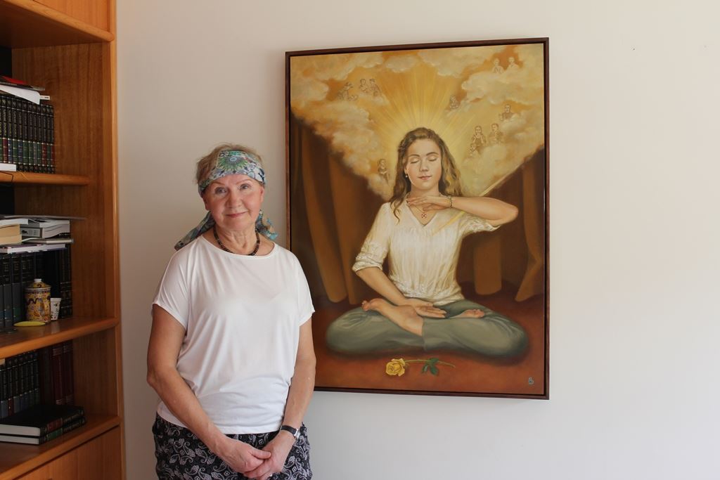 ![]() 图3:墨尔本波兰裔画家芭芭拉·舍费尔(Barbara Shafer)和她近期的画作合影。 |