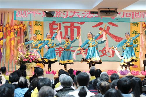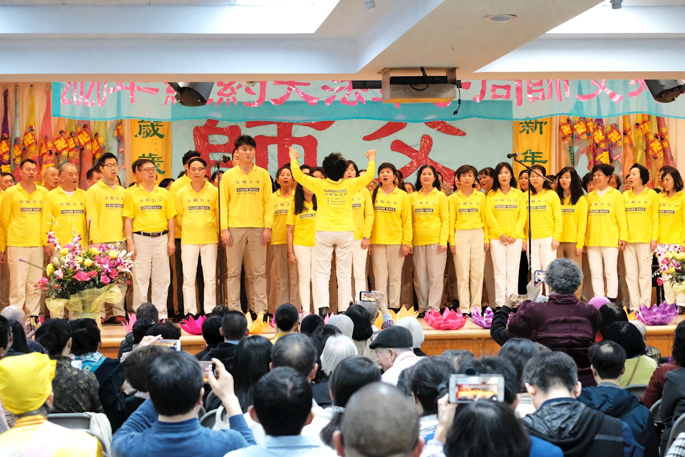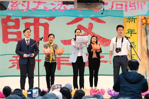 【明慧网二零二零年一月十九日】庚子年中国传统新年即将到来。二零二零年一月十二日,纽约部份中西方法轮功学员逾六百人齐聚法拉盛台湾会馆,给慈悲伟大的师尊李洪志先生拜年:弟子们感恩师尊的慈悲苦度,恭祝师尊新年快乐。学员们通过文艺演出,表达对修炼大法机缘的珍惜、修炼后身心净化的喜悦、传播“法轮大法好”让更多世人得法向善的心愿,以及对李洪志师父的无限感恩。