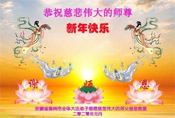 - 安徽大法弟子恭祝师尊新年好(23条)- 恭祝师父新年快乐!弟子决不辜负师父的教诲,无论时日长短,无论外部环境如何,都不会改变弟子对大法一颗赤诚坚定的心,弟子一定会跟随师父走到底。