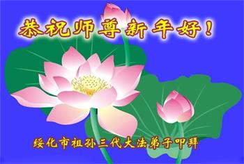 - 黑龙江大法弟子恭祝师尊新年好(18条)- 黑龙江省绥化市祖孙三人大法弟子恭祝师尊新年快乐!祖孙三人恭祝师尊新年好!感谢师尊为我们祖孙三人所做的一切!师尊从地......