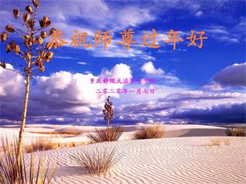 - 沈阳大法弟子恭祝师尊新年好(27条)- 恭祝师尊新年快乐!弟子们用语言无法表达对师尊的感恩,只能在最后的时刻,努力做好三件事回报师恩。