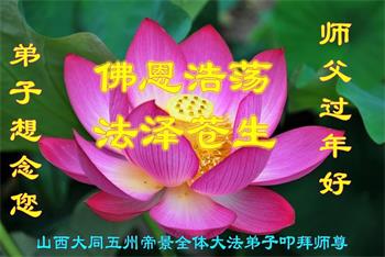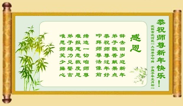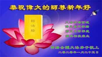 得到大法福益、善报的众生无计其数,在中国传统新年来临之际,他们纷纷寄来贺词,讲述自己真实的故事和神奇体验,真诚的向慈悲的李洪志师父拜年!感谢法轮大法带来的美好!