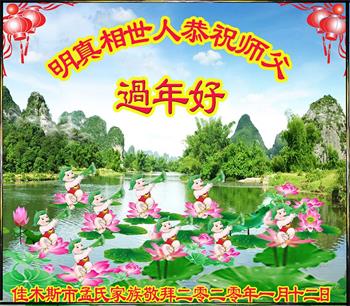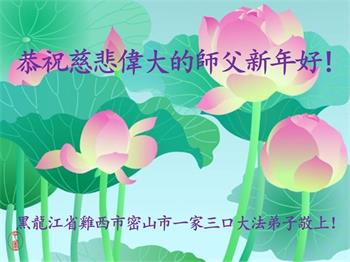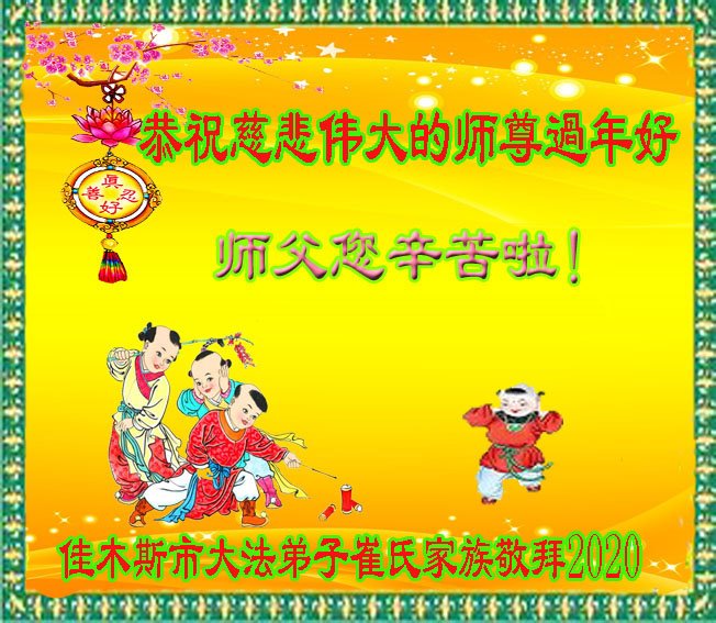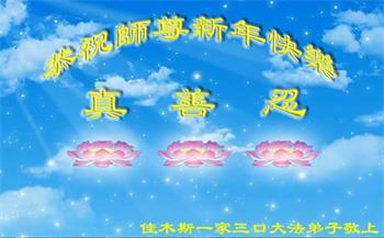 福建福州一大法弟子与明真相得福报的家人恭祝慈悲伟大的师尊新年快乐!感恩师尊的慈悲救度!师尊您辛苦了!弟子想念您!叩拜师尊!