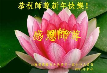 山东烟台莱阳八十八岁的大法弟子的亲人携全家族人恭祝李大师过年好!