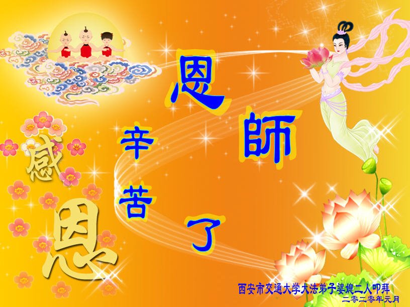 在这新年到来之际,请允许我虔诚的感谢李洪志大师的大恩大德,祝福李大师新年快乐!万事如意!