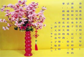 在此大年到来之际,我和女儿同修一起恭祝慈悲伟大的师父新年快乐!叩拜师父救度之恩!