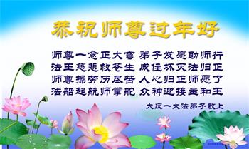 多年来坚守在景点、媒体、影视、社区弘法、网络、真相电话等各个项目中的大法弟子们深知自己的使命,感谢师尊给予弟子救度众生的荣耀。在中国传统大年来临之际,世界各地大法弟子恭祝师尊新年好!