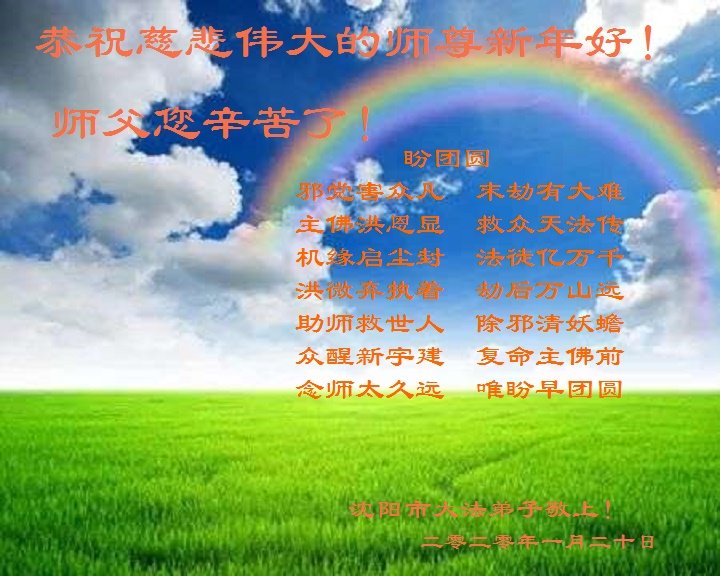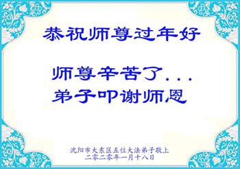 沈阳市一大法弟子与亲人们恭祝慈悲伟大的师父过年好!