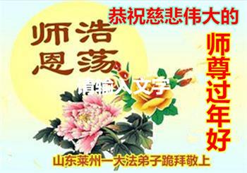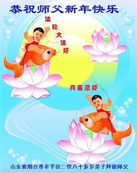 山东烟台招远市一军转干部恭祝李洪志大师过年好!