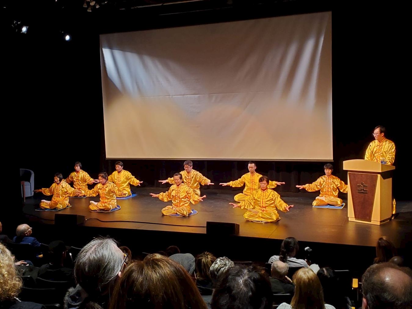 影片放映前,9位法轮功修炼者在现场做了功法演示。影片制作人Yolanda Pappini-Pollock向大家介绍了她为什么要制作这部反映对法轮功群体灭绝的电影:“作为一个犹太人妇女和一个犹太人大屠杀幸存者的女儿,我深刻地明白由于信仰和种族等原因被非法化、被攻击、被迫害意味着什么。我知道一个被压迫的少数群体没有办法去争取他们的权利、尊严和希望的那种感受。”