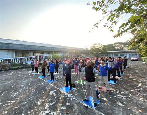 '图1~2:二零二零年一月五日,屏东法轮功学员在晨曦中炼功。'