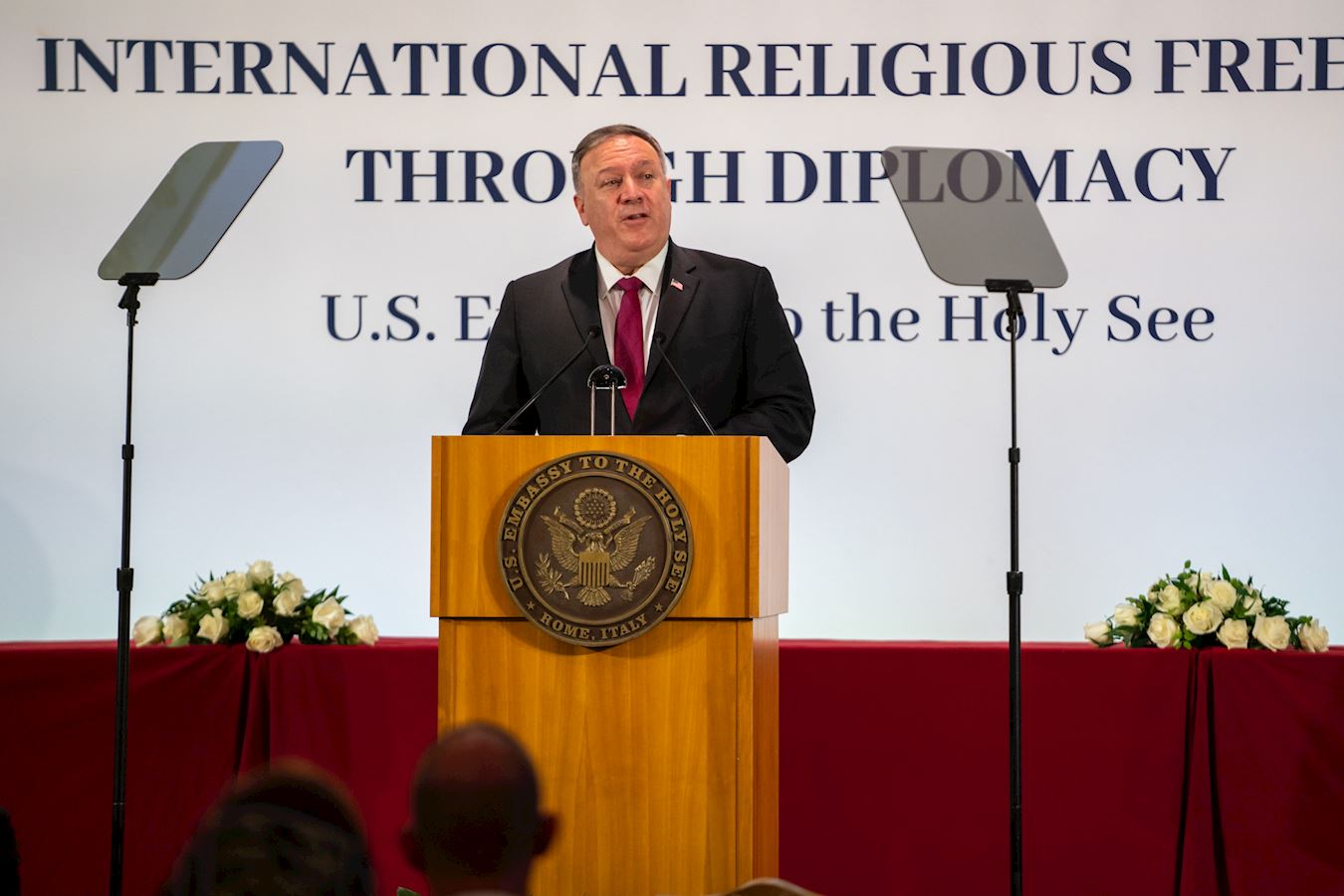 蓬佩奥说,美国和罗马教廷在二零一九年庆祝了三十五年的正式外交关系。今天,我们的伙伴关系建立在共同的价值观、相互尊重和道德领导的基础上,与以往一样牢固。我们期望继续与罗马教廷保持伙伴关系,以保护和促进人权,促进宗教自由,打击人口贩运并寻求和平解决世界各地危机的办法。