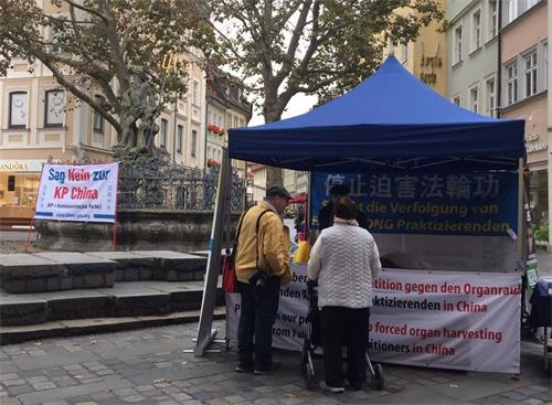 ![]() 图3:二零二零年十月三日,部份法轮功学员在德国巴伐利亚州维尔茨堡市举办讲真相活动。 |