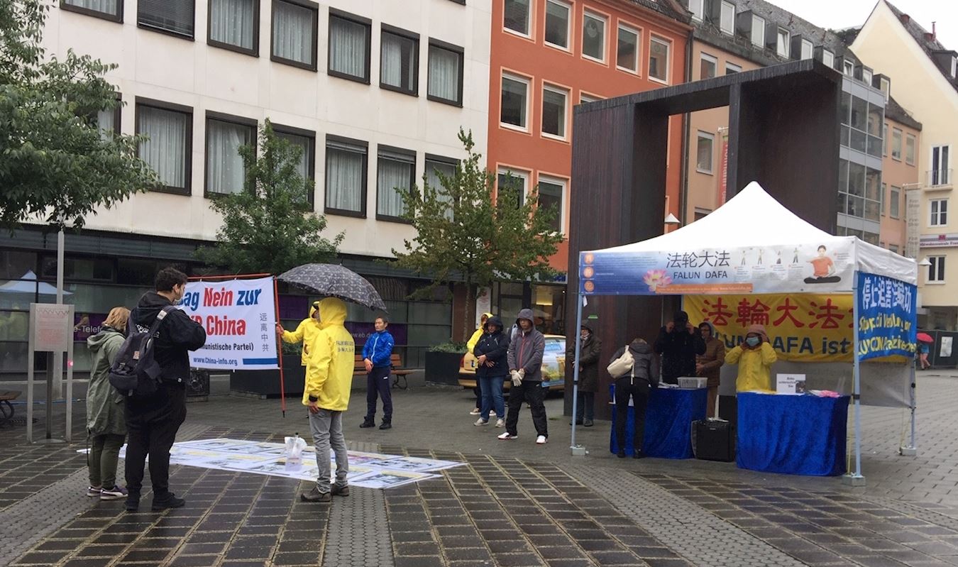 二零二零年九月二十六日,部份法轮功学员再次在“人权之城”纽伦堡举办讲真相活动。跟往常一样,偌大的横幅,吸引着过往路人的注意。