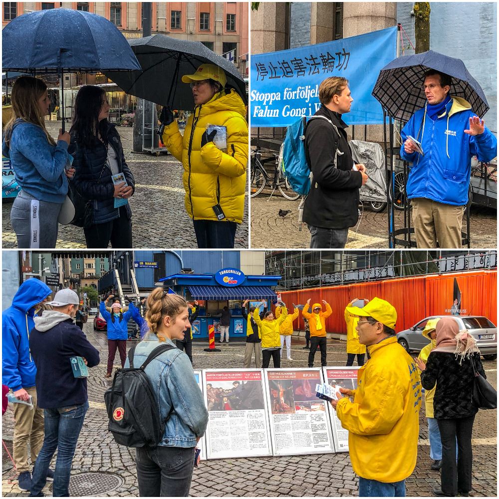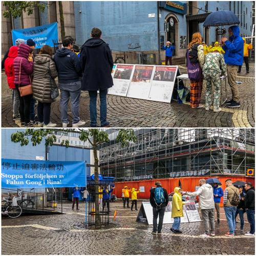 瑞典民众冒雨了解真相 谴责中共暴行(图)