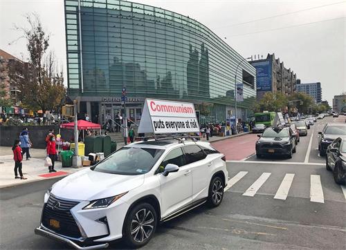 十月四日的周日,当“真相车队”行驶在法拉盛缅街市中心时,有民众看到非常兴奋,高喊:消灭共产党、共产党滚出美国、共产党滚出联合国、共产党滚进火葬场等。有民众表示:你们做的太好了,一定要加油!