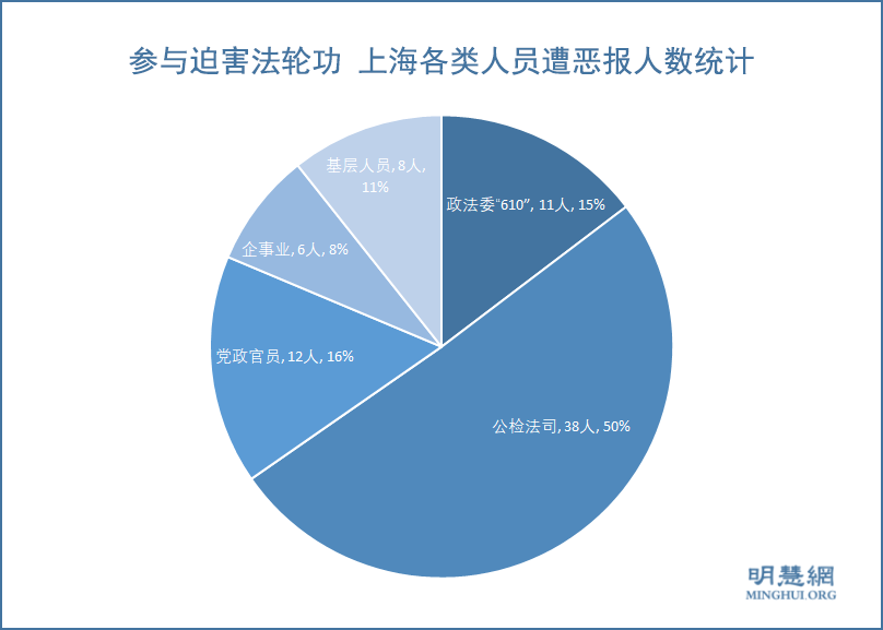 ![]() 图1:参与迫害法轮功 上海各类人员遭恶报人数统计 |