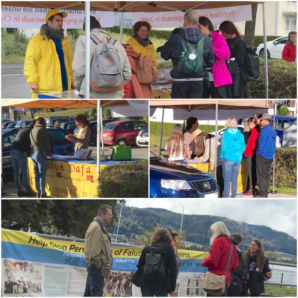 德国、瑞士和奥地利法轮功学员于二零二零年十月三日德国统一日,在博登湖沿岸九大景点举办了信息日活动,向当天上万名来博登湖参加“横向思维”组织的“和平人链”的德国、瑞士和奥地利民众,反对这项活动的示威者以及游客,介绍法轮功真相,揭露中共对法轮功学员的迫害,特别是中共活摘法轮功学员器官的罪恶。很多人得知真相后,签名声援法轮功学员反迫害。