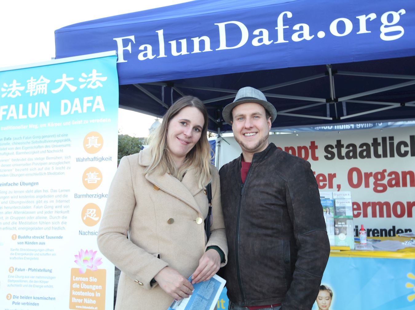 来自柏林的一位女士说,她在柏林就看到过法轮功学员的信息台,感觉非常祥和,非常好。她在柏林已经签过名了,今天很高兴又看到法轮功学员。还有位女士说之前已经拿过关于中共活摘法轮功学员器官的资料了,问可否再多拿一些,放在她们公司里,以便让更多人了解这件事。