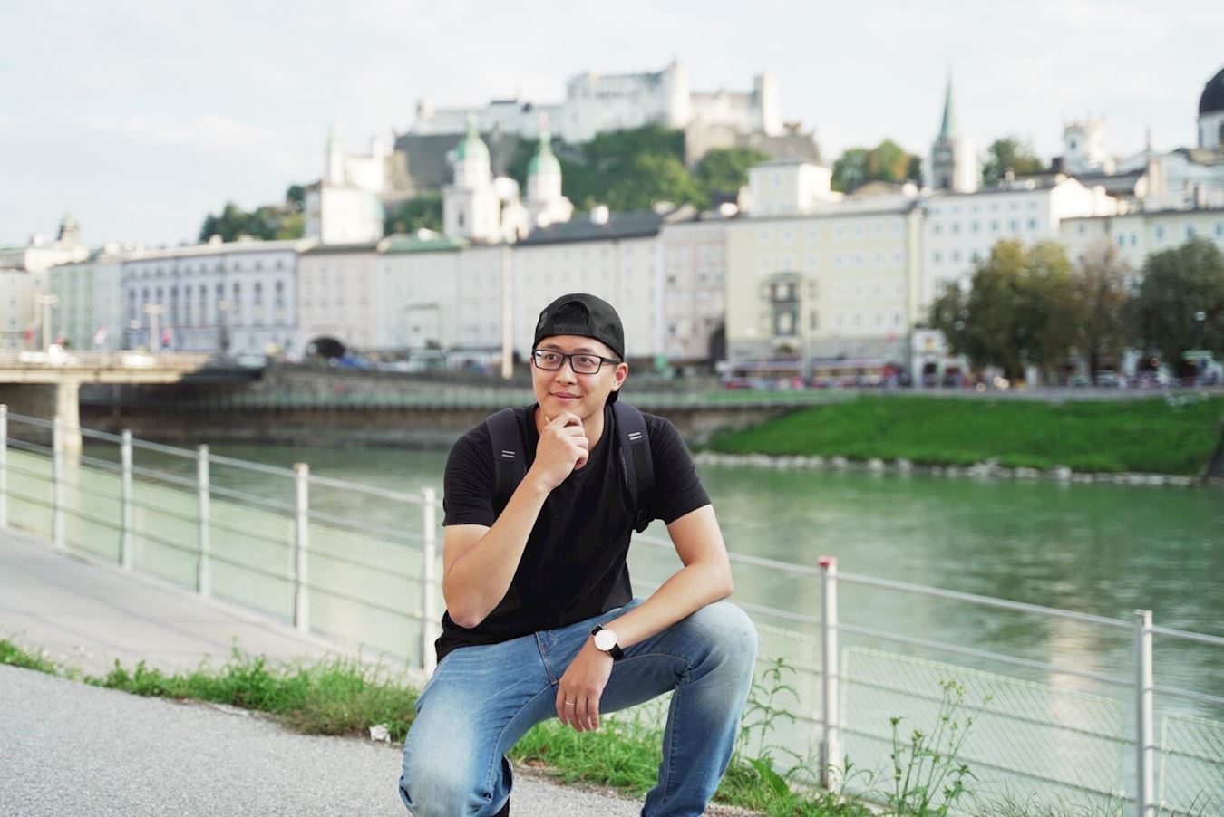 图:樊堂宇在欧洲游学期间,背景为捷克查理大桥旁边的河岸。