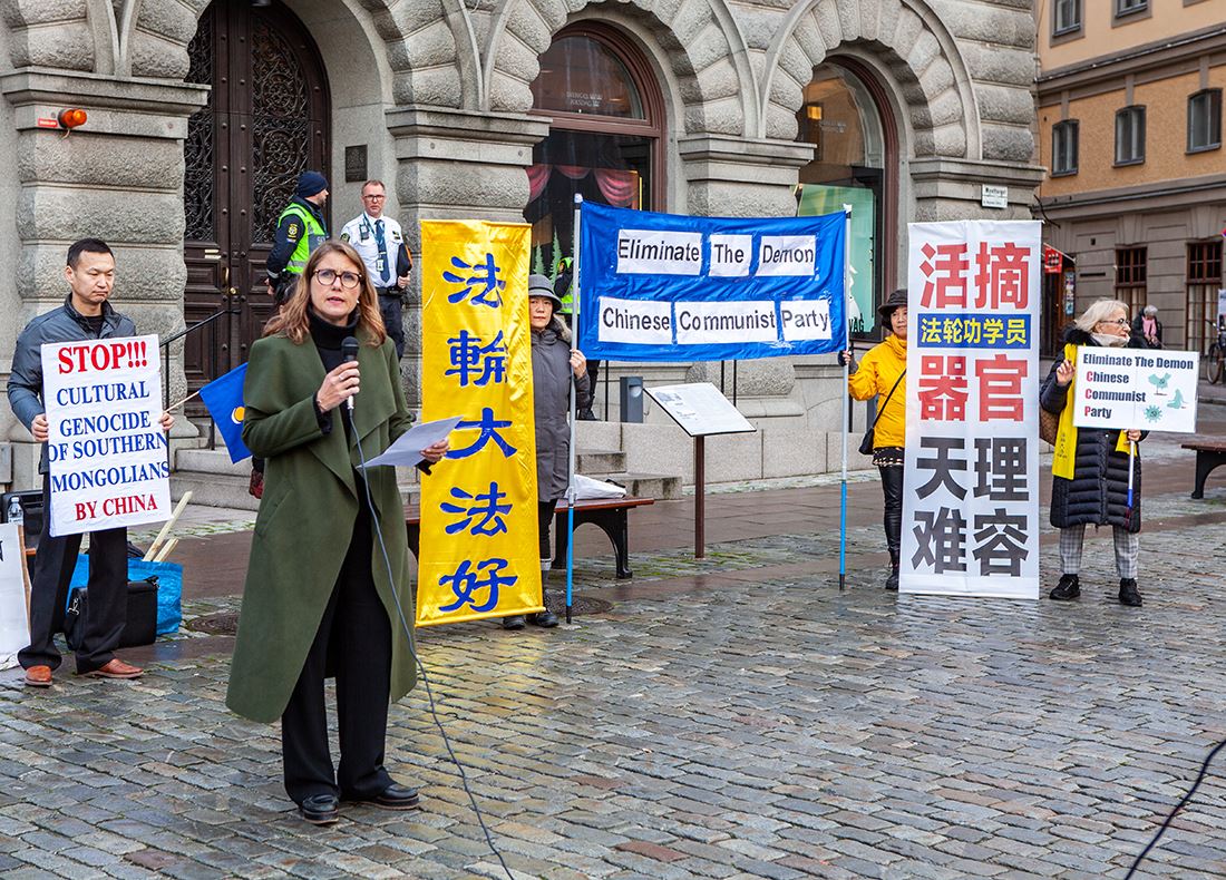 国会议员珍妮·阿尔姆·爱立信(Janine Alm Ericsson)谴责中共对各族裔民众的迫害。她指出:“中共对法轮功、西藏、蒙古、新疆等多个团体的迫害,对香港反送中运动参与者的打压、迫害,都是没有法律约束的。中共政权对人权的蔑视,这是绝对不能接受的。”