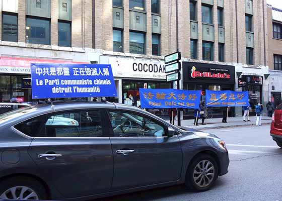 十月二十七日,魁北克法轮功学员在蒙特利尔中领馆前呼吁解体中共、停止迫害,得到民众支持和响应。