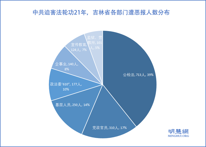 图2:中共迫害法轮功21年,吉林省各部门遭恶报人数分布