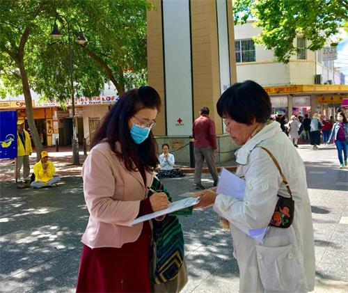 【明慧网二零二零年十一月十二日】(明慧澳洲悉尼记者站报道)二零二零年十一月八日周日,法轮功学员在澳洲悉尼西南部的中央商务和行政中心堪普西(Campsie)的安扎克步行街(Anzac Mall),举办“解体中共”签名活动,得到民众的赞同和支持。有民众表示:法轮功做的事情之所以伟大,是因为它能使更多的人知道正在发生的真相,人们将更好地了解中共的本质。