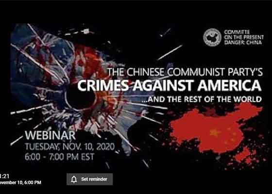 “应对中共当前危险委员会”周二(2020年11月10日)举办研讨会,主题是“美国外交智库论坛:中共对美国及世界的犯罪”。