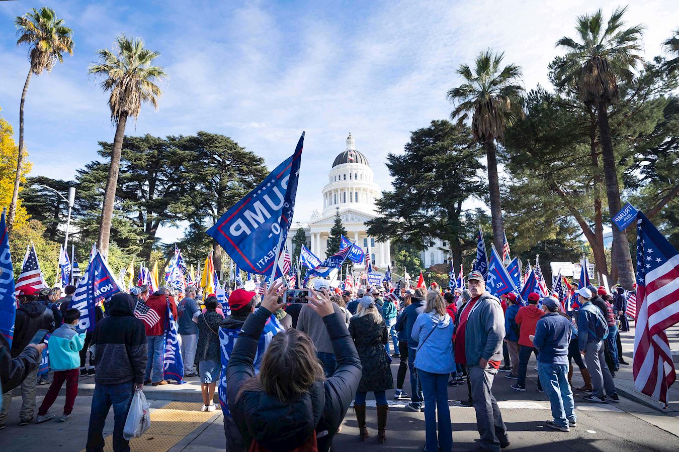'图1~4:二零二零年十一月十四日,数百名民众在美国加州首府沙加缅度集会,支持美国总统川普连任。'