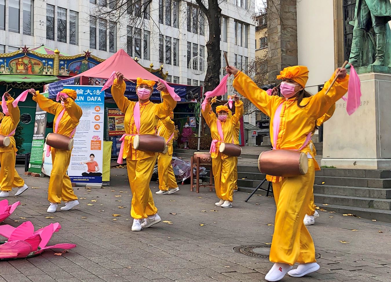 一位三十岁左右的中国人被腰鼓队的表演吸引,前来观看。他跟学员说,自己知道中共对法轮功的迫害。学员们跟他讲了法轮功“真、善、忍”的准则和中共的邪恶,并告诉他“三退保平安”。听了学员的解说后,这位来德国打工的中国男士宣布要退出中共的党、团、队。临走时,他记下了学员的联系方式,表示要跟他的朋友说三退的事,也希望学员能帮助他们三退。