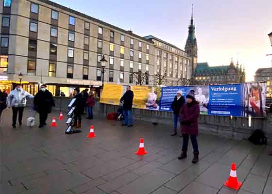 德国汉堡法轮功学员市中心揭露迫害