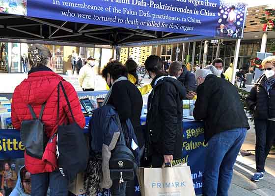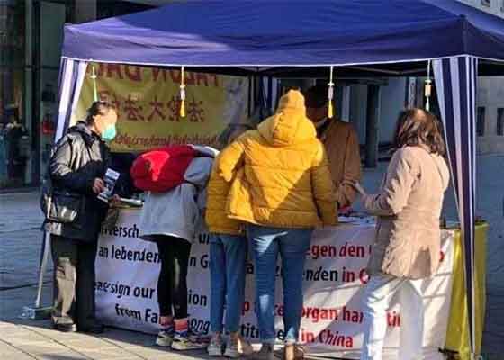 德国斯图加特法轮功学员11月21日在市中心举办活动,向人们展示法轮功的美好,揭示中共对法轮功的迫害和活摘法轮功学员器官的罪行。