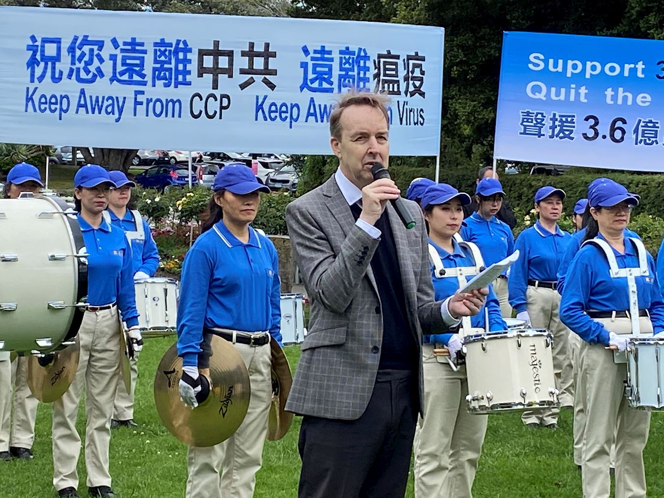 克里斯·纽曼(Chris Newman)是前进新西兰/公众党(Advance NZ/Public Party )的重要成员,也是新西兰直接民主(Direct Democracy)总秘书长。作为这次活动的特邀嘉宾 ,他在演讲中说道:“在这个春光明媚的美好的星期天早晨,我首先感谢这些为自由而挺身而出的法轮功学员们。新西兰人民也许认为,自由是流淌在我们血液里的东西、我们的生活方式,认为这一切都是理所当然的。我们享受着自由,可我们也许没有意识到我们国家存在着潜在危机。”